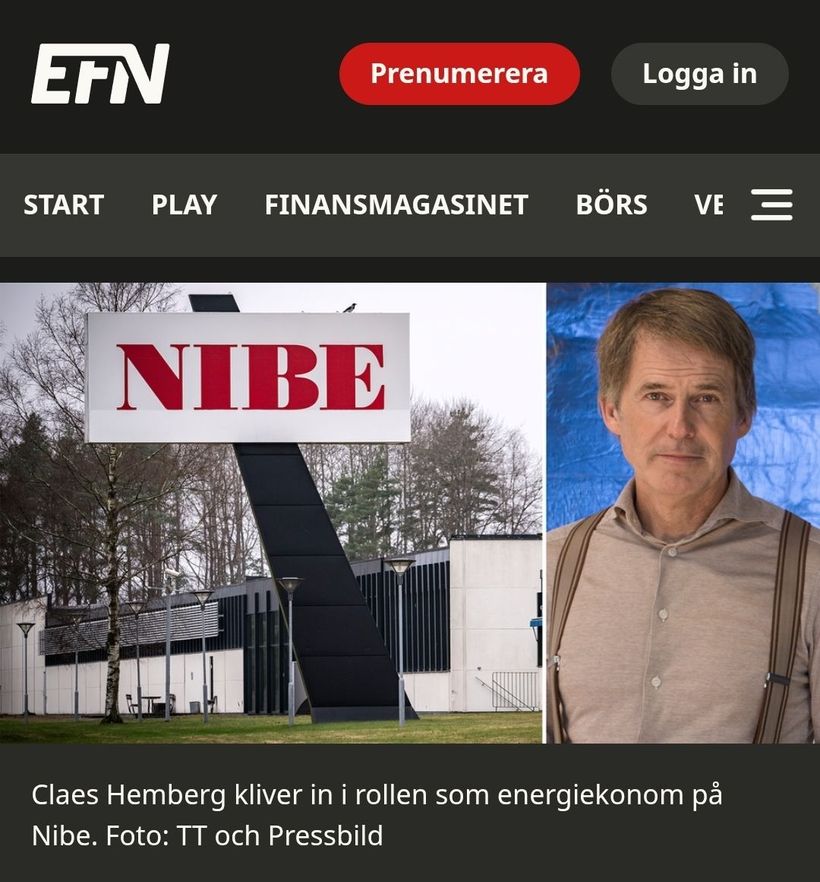 Idag läste jag om att Nibe anställer Claes Hemberg som något så lustigt som “energiekonom”. Vad är det ens undrar man ju. Tydligen ska Claes