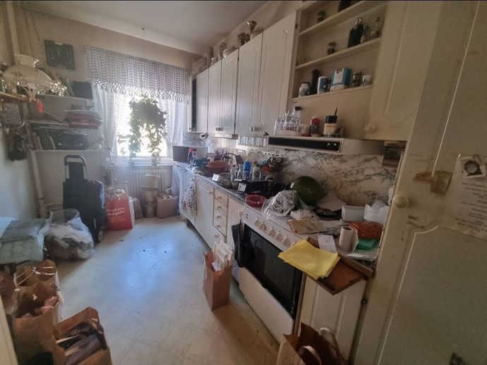 Nu blev lägenheten ledig och då startade mitt jobb. Först fick rörläggare och elektriker koppla bort vatten och el. Sen tog jag in en firma med låg timpeng för att riva ut kök, garderober och inredning i badrum. Sen passade det bäst i tiden för målaren att ta vid så de fick några veckor på sig att riva ner, spackla, spärrmåla och sen måla vitt.