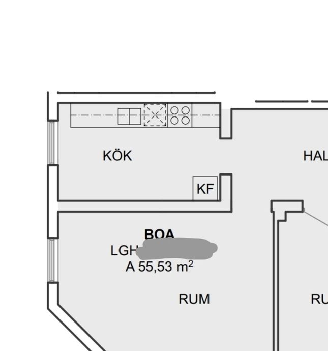 När detta är klart tar jag in en godkänd kille för att mäta boarea och i det här fallet gick hyran från 52 kvm till 56 kvm. Det roliga i juat den här lägenheten är marginalen med vilken den nya boarean fastställdes. 55,53 kvm avrundas till 56 mrn marginalen var alltså ca 2x2 cm.