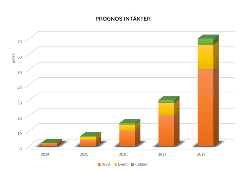 Företaget är fortfarande ungt och de visar än så länge röda siffror. Omsättning januari till augusti 2024 omsatte MWE 1.103.000 kr och gjorde en förlust på 476.000 kr. Inte lysande men inte heller katastrofalt för ett nytt bolag som satsar på att växa. Tittar vi på sålda volymer så sålde de ca 20.000 flaskor. Planen för 2025 är 40.000 st flaskor och då har de redan tagit en stor del av de fasta kostnaderna. MWE siktar sen på fortsatt tillväxt och även om prognosen nedan är just en prognos så tror vi att de har goda chanser att förverkliga den.