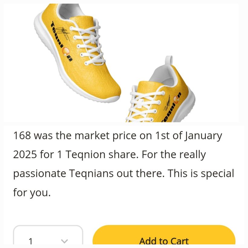 Bolaget har byggt upp lite av en kult runt sig vilket man märker när man kritiserar dem på sociala medier. Då kommer alltid folk till deras försvar och det har företaget medvetet byggt upp och försöker spä på. Därför har de som ett av få börsbolag merch-försäljning. De gör dessutom reklam för web-shopen via en banner på alla sidor av sin hemsida. Där kan man köpa Teqnionskor (gula) för 1836 kr, vilket är akitekursen i dollar per 1 januari 2025. Ja ni hör ju. Visst kan detta vara kul och så men de får också inse att vissa tycker sånt är töntigt.