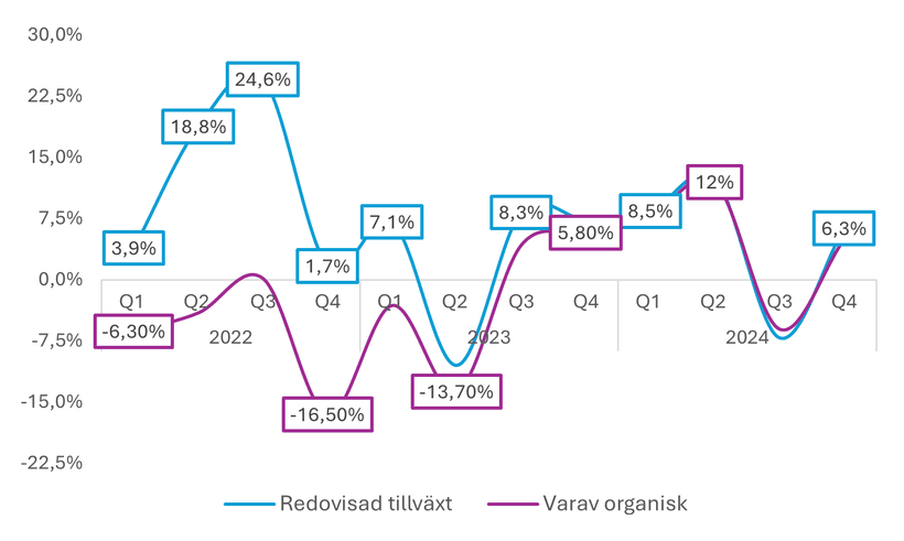 I Q4 redovisade alla koncernens varumärken förutom Artscape negativ organisk tillväxt. Artscape skjutsades istället av en tidigarelagd beställning som kommer slå åt det andra hållet i Q1. Därtill finns en tydlig valutamotvind eftersom USA är en viktig marknad. Således blir Q1 rimligen ganska svagt. Styrelseordförande Magnus Welander låter trots det optimistisk för 2025, både tillväxt- och lönsamhetsmässigt.