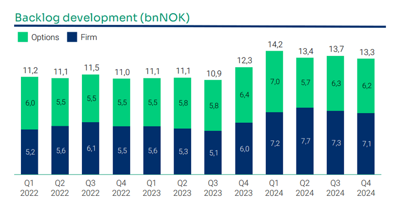 Orderstocken växte 8% på årsbasis till 13,3 MDRNOK, vilket varit en stabil nivå de senaste kvartalen. Operativt kassaflöde uppgick till 231 MNOK i Q4, och CapEx dubblerades nästan jämfört med Q4 2023. Under helåret 2024 spenderade bolaget mycket mer på CapEx än vad man initialt prognostiserat. CFO menar att om Odfjell ser många möjligheter på marknaden och vinner flera kontrakt så ökar investeringsgraden. Rimligen är det en fördel att kunna vara aggressiva i en tuff marknad. Normaliserad CapEx de senaste åren förväntas vara 250 MNOK, 75% av årliga avskrivningar. Ledningen förväntar sig även rörelsekapitalsförbättringar 2025.