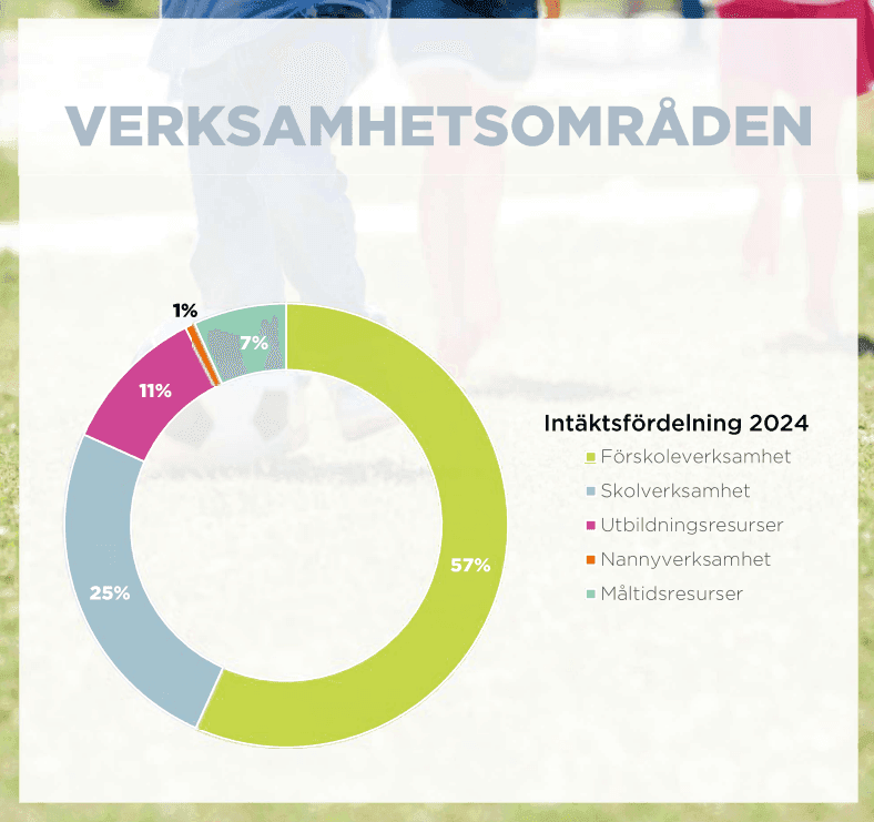 Tellusbarn - driver 28 fristående förskolor med 1600 inskrivna barn. På rullande 12 månader omsätter affärsområdet nästan 300 MSEK och är således koncernens största affärsområde. EBITDA-marginalen uppgår till 9,2%.