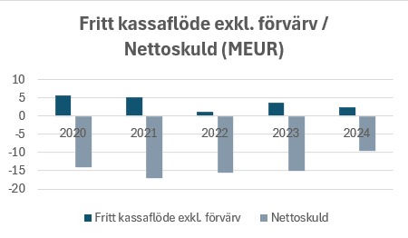 Viafin har sedan 2020 haft en omsättnings- CAGR på 12% i snitt per år, varav 5% är organiskt. Bolaget är skuldfritt, med en nettokassa rullande 12 månader på 2,3 meur, efter ett nyligen genomfört förvärv.