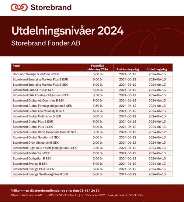 ”Ursprungligen är produkten framtagen för framför allt stiftelsekunder som uppskattar en hög och stabil utdelningsnivå. När produkterna nu tillgängliggörs för fler är ambitionen att vi fortfarande ska ge en attraktiv och stabil utdelning för dem som uppskattar förutsägbarhet. Så ja, nivåerna från 2024 kommer vara samma även framåt. Vi kommer att uppdatera produktbladen så att investerare kan förvänta sig en utdelning under första halvan av juni månad.”