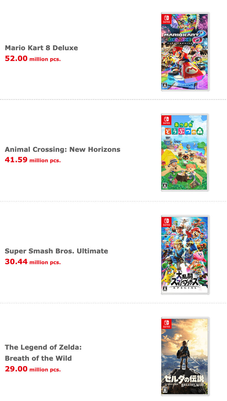 Medan utvecklingen av konsol X fortlöper i det tysta är Nintendo duktiga på att mjölka sin idag över sex år gamla konsol. Titlar som Mario Kart, Animal Crossing: New Horizons, Zelda: Breath of the Wild, Smash Bros med flera har sålt i miljontals exemplar. Av nämnda är Zelda “sämst”, med “bara” 29 miljoner sålda exemplar. Bara under de senaste nio månaderna har Mario kart Deluxe sålts i 6,6 miljoner exemplar. Beakta då att spelet först släpptes till Nintendo Wii U 2014 och är en portning till Switch…