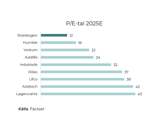 Storskogen värderas nu till P/E 12 för 2025. Om bolaget fortsätter att leverera på sin omställning i likhet med tidigare kvartal finns en stor uppsida. En rabatt gentemot övriga serieförvärvare är motiverad, men hur stor?