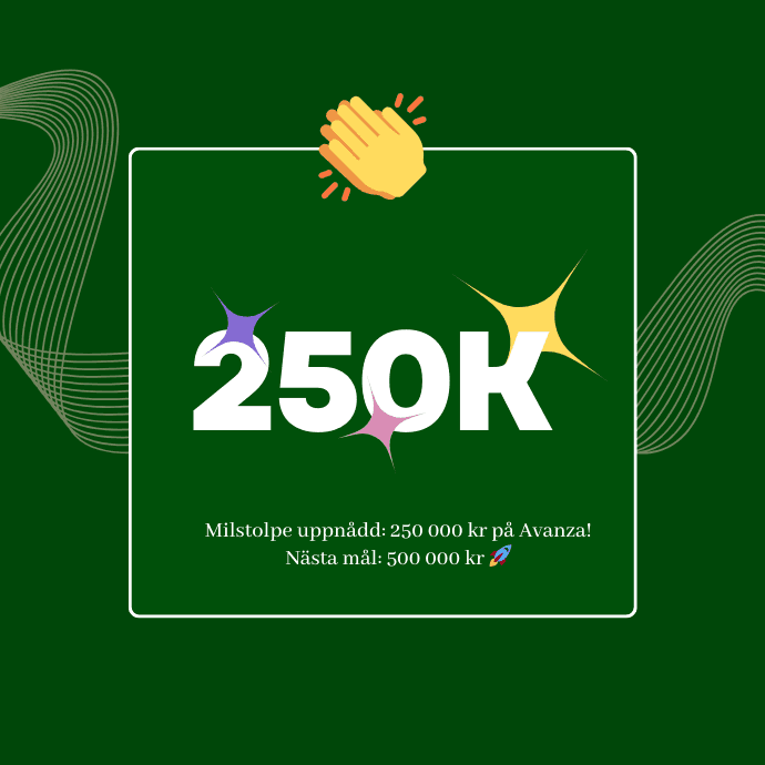 Att nå 250 000 kr är en viktig del av min ekonomiska resa. Det visar att små och regelbundna investeringar över tid kan ge imponerande resultat. Nu när jag har nått detta mål är det dags att sätta nästa: 500 000 kronor.