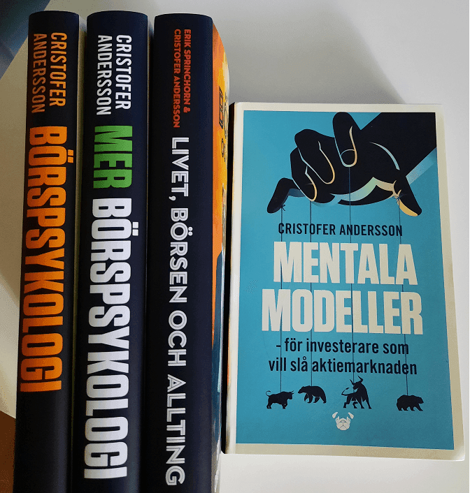 Jag har läst boken Mentala Modeller av bloggrannen här på Trade Venue Cristofer Andersson. Det här är inte mindre än fjärde boken han ger ut på på temat börs och psykologi och jag har läst dem alla. Riktigt imponerande jobb av Cristofer, inte minst då han dessutom jobbar som lärare, bloggar här och regelbundet skriver artiklar för Aktiespararna.