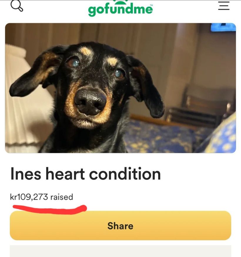 Tur att hon hade många följare i sociala medier så det löste sig. Och att det är enklare att slösa pengar på sig själv och tigga pengar till hunden än att betala själv för hunden och behöva tigga ihop pengar för att slösa på sig själv.