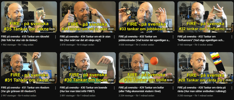 Killen jag pratar om är Jesper som har Youtubekanalen “FIRE på svenska”. Om ni inte hört talas om den hittar ni den här. Ungefär så här ser det ut: