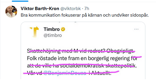 Första nyheten var att brytpunkten (den så kallade skiktgränsen) för statlig skatt inte ska höjas. Att höja skiktgränsen har varit praxis sedan nuvarande system infördes 1991. Det gör att fler kommer behöva betala statlig skatt och de som redan betalar statlig skatt kommer få göra det på större andel av lönen (då de flestas löner stiger år för år). Det här skapade rätt mycket snack på sociala medier att det var oväntat besked från en moderat finansminister. Jag tycker Expressens Viktor Bart-Kron hade en lite kul vinkel på det hela.