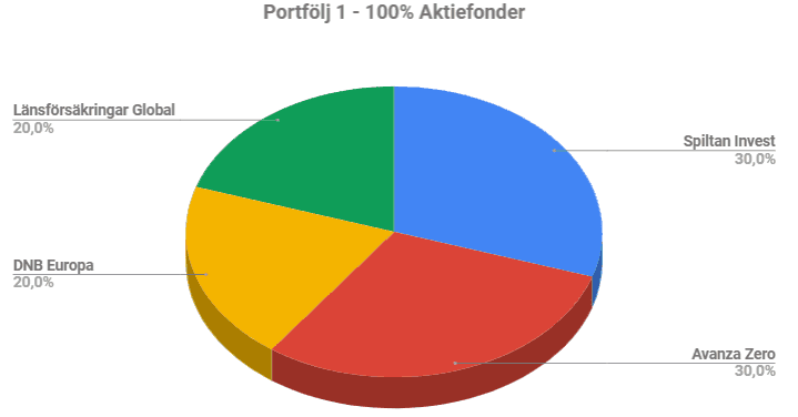Portfölj 1 som består av 100% aktiefonder har utvecklats bäst med +4,57%. Den här portföljen är den med högst risknivå blan mina valda portföljer.