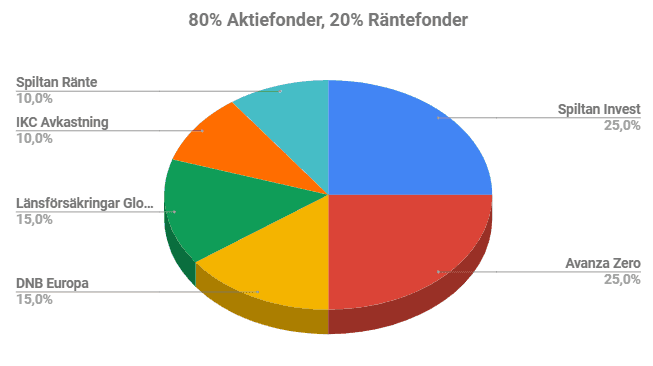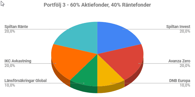 Fondportfölj 3 är portföljen med lägst risk och består av 60% Aktiefonder och 40% Räntefonder. Den har gett en avkastning på +4,40%, vilket är en bra riskjusterad avkastning med tanke på den stora andelen av räntefonder.