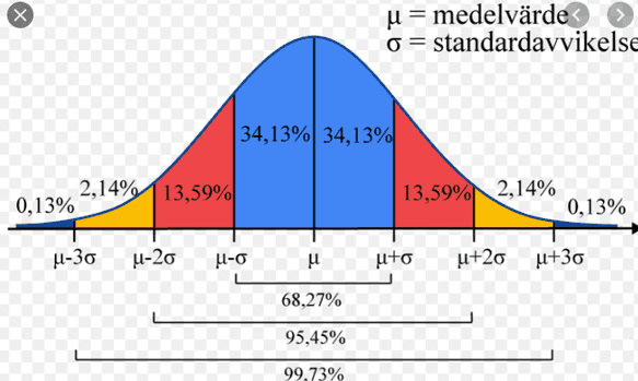 Om jag tittar på min portföljs standardavvikelse idag ligger det på 18%. Men mäts och anges hos Avanza bara för 1 år som jag tycker är en väldigt kort mäteperiod. Standardavvikelser kan mästas inom många områden och så här står det i Wikipedia;
