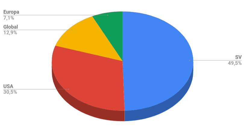 Fördelningen över länder och globalt sätt ser ut enligt ovan och jag försöker ha en riktlinje på Sverige innehaven ska vara 60%.