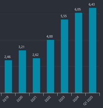 Kvartalets rörelsemarginal landade på 13,1 % (11,7). Det ser väldigt stabilt ut. Det är riktigt, riktigt bra marginaler. Ur ett historiskt perspektiv.