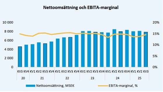 Lönsamheten håller i sig. EBITA-marginalen på 12-månaders rullande låg på 14,1 %.