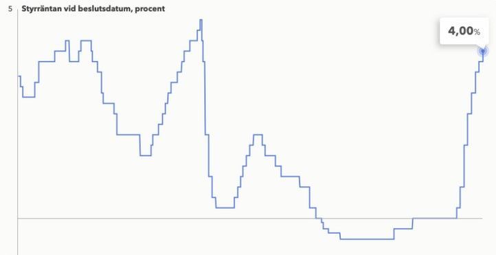 Annat aktuellt för tidsstämpling är att centralbankernas höjningar av styrränta verkar planat ut. Det gäller Fed, ECB och Riksbanken. I skrivande stund står Riksbankens styrränta på 4 %. Prognoser pekar på att vi kan få se så smått sänkta räntor senare i år. Vi får se. Nivån i sig är inte farlig.