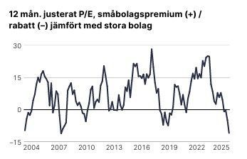 Tar vi en titt på marknadsavsnittet i rapporten så ger den en s.k. nyanserad bild där delar av världen har det lite tuffare och andra lite lättare. Bolaget ser dock flera positiva tecken där de verkar. Ränteläget har börjat normaliseras, svenska småbolag har genomfört omfattande effektiviseringar och vinstutvecklingen förbättras sakta men säkert. Särskilt intressant är resonemanget kring värderingar. Svenska småbolag handlas i dag, enligt bolaget, till den största rabatten mot storbolag sedan finanskrisen 2008–2009. Trots att vinstutsikterna för småbolag på sikt bedöms vara bättre än för storbolagen.
