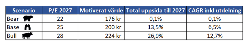 | P/E (kurs 179 kr) | 55,9 | 41,6 | 33,8 | 44,8 | 26,7 | 22,4 |
