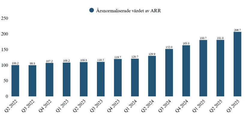 I Q3 uppgick de kortfristiga kontraktstillgångarna till 155,2 MSEK. Den främsta orsaken är långsammare kundbeslut i Nordamerika under kvartalet, delvis kopplat till budgetkrisen och risken för government shutdown. Enligt VD bedöms dock kontraktstillgångarna som mycket säkra, och han ser ingen risk i själva konverteringen, endast en tidsförskjutning. CFO bekräftar att deras bedömning fortfarande är att den nuvarande finansieringen är tillräcklig för att täcka investeringar och rörelsekapitalbehov för 2026. Samtidigt har orderboken dubblat yoy och man står inför ett intensivt 2026.