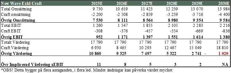 För att detta ska vara köpvärt bör man hålla med om i alla fall två saker: 1. New Wave kommer gynnas av en marknad och konsument som vänder 2. Craft kommer fortsätta växa på och åtnjuta högre marginaler. Är man tveksam på dessa är New Wave ganska okej värderat här runt EV/EBIT 14-15 på 2025E.