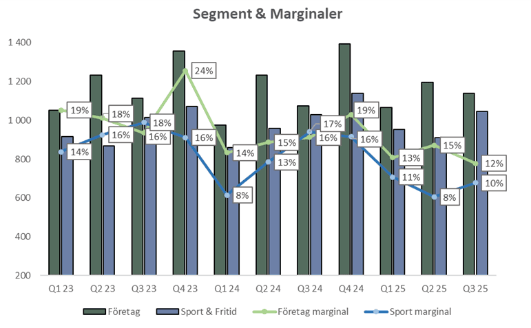 Efter att New Wave satte nya mål för EBIT-marginalen (Q1 2024) har marknaden jobbat emot dem och har fått marginalmålet att framstå som mer avlägset än på länge. På den största marknaden som ligger på andra sidan Atlanten kämpar man med valuta och tullar som går emot en. På hemmaplan vinner man just nu inte heller, där har Sportindex som Torsten ofta drar upp varit negativ i 13 kvartal fram till i år (enligt Torsten), dock har New Wave stått fint i denna motvind, och siffrorna + Torsten försöker signalera för aktieägarna om att bättre tider kommer.